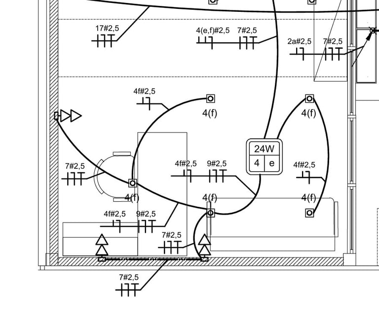 O desenho técnico é a representação visual de como será a instalação elétrica da edificação. Ele inclui: